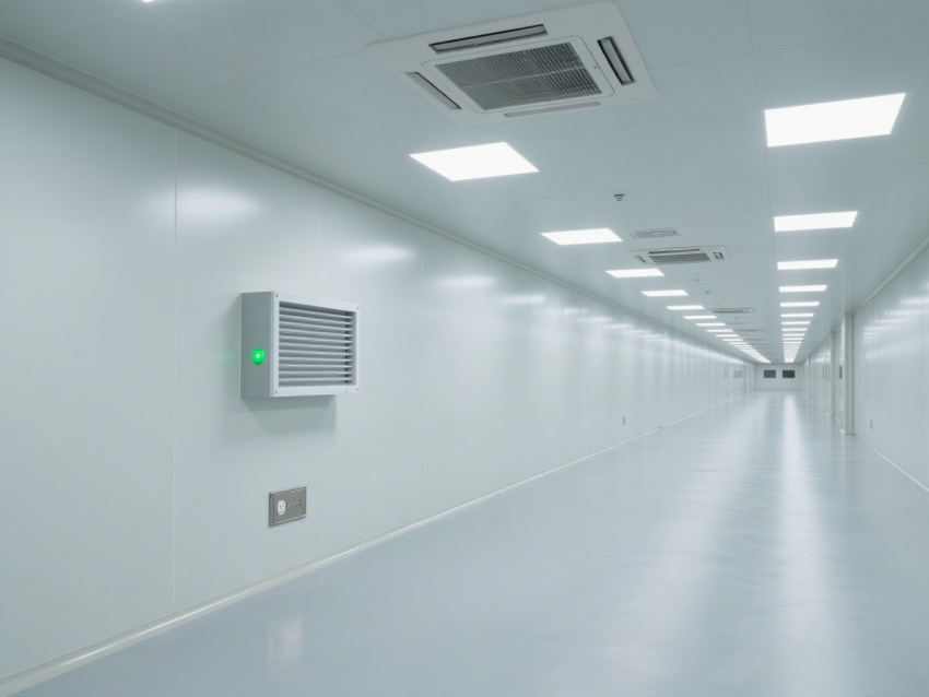 精準還原電子行業潔凈空間,白灰主色調貫穿整體,風格簡約專業且質感統一。淺白墻面搭配淺灰地面、金屬色設備接口線條,既符合電子車間低塵、抗靜電的核心需求,又通過色調層次避免空間單調,視覺上凸顯潔凈通透的特質。?