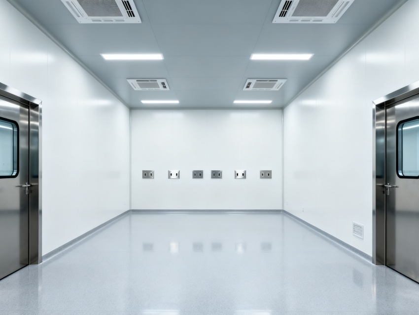 電子芯片行業的無塵車間,需達到百級甚至十級潔凈標準。設計上采用“垂直層流”氣流組織,頂部密布FFU風機過濾單元,搭配高效HEPA過濾器,確保潔凈空氣自上而下均勻覆蓋芯片生產區,將0.5μm以下微粒濃度控制在每立方米3500個以內;地面選用防靜電環氧自流平,通過接地系統將靜電電壓控制在±100V以下,避免靜電擊穿芯片;墻面采用不銹鋼夾芯彩鋼板,拼接處用硅酮密封膠嚴密填充,減少積塵死角。同時,車間劃分原料預處理區、光刻區、封裝區,各區之間設置風淋室與緩沖間,防止交叉污染。?